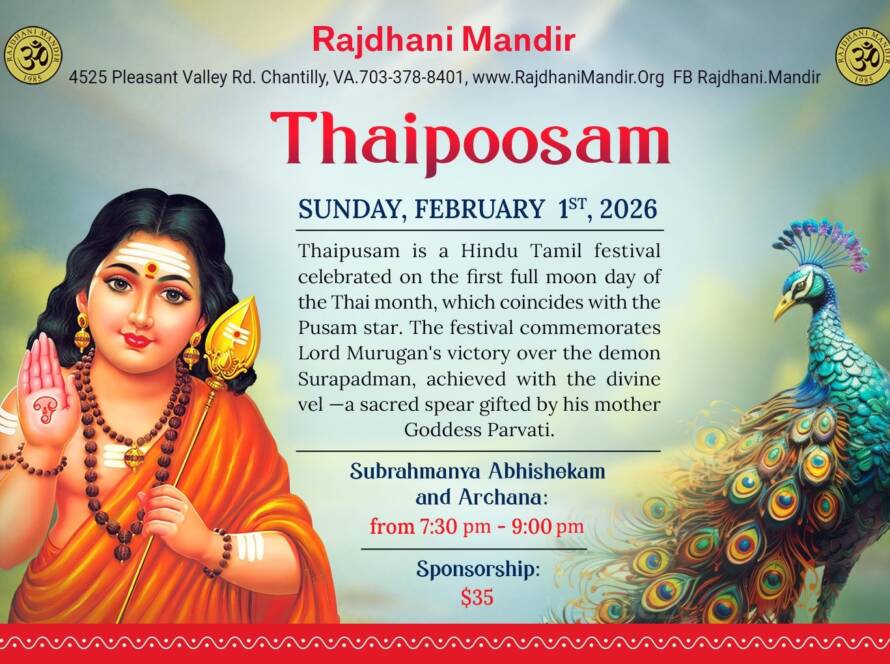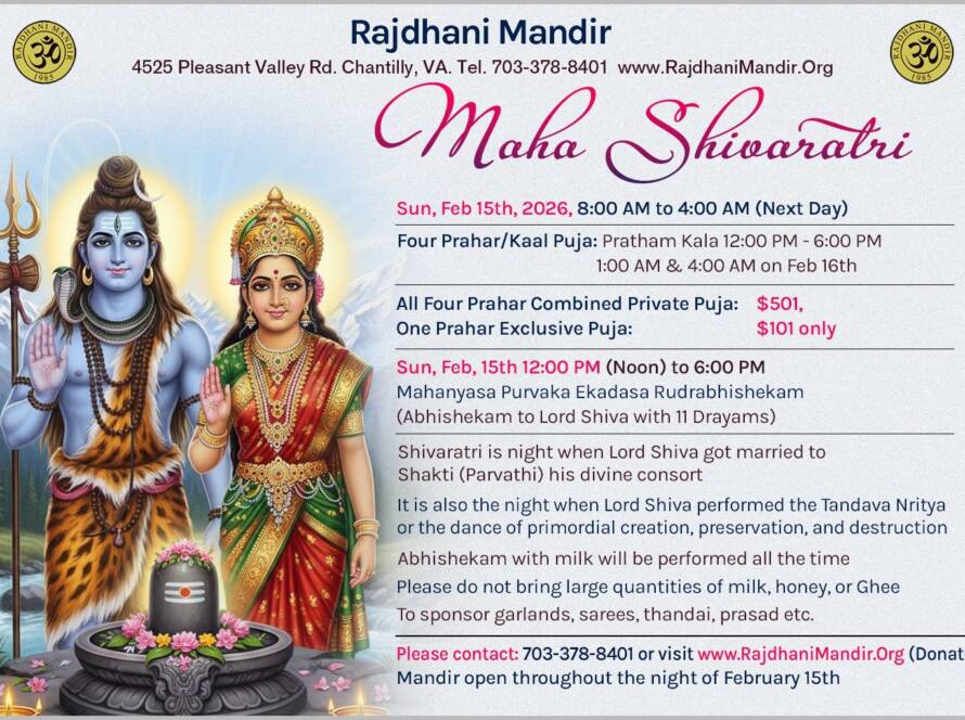 The Rajdhani Mandir, located in Chantilly, Virginia, was inaugurated in March 2000 on an eight-acre wooded site. Representing Hindu, Jain, and Buddhist faiths, it serves as an oasis for the DC Hindu community. The Mandir provides a serene environment for people to connect with God and offers a well-lit prayer hall. It caters to religious needs through scheduled pujas and abhishekams, while also hosting cultural programs and Sunday religion classes for children to preserve our heritage.
